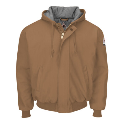 Bulwark Men's Tall Insulated Brown Duck Hooded Jacket with Knit Trim JLH6T